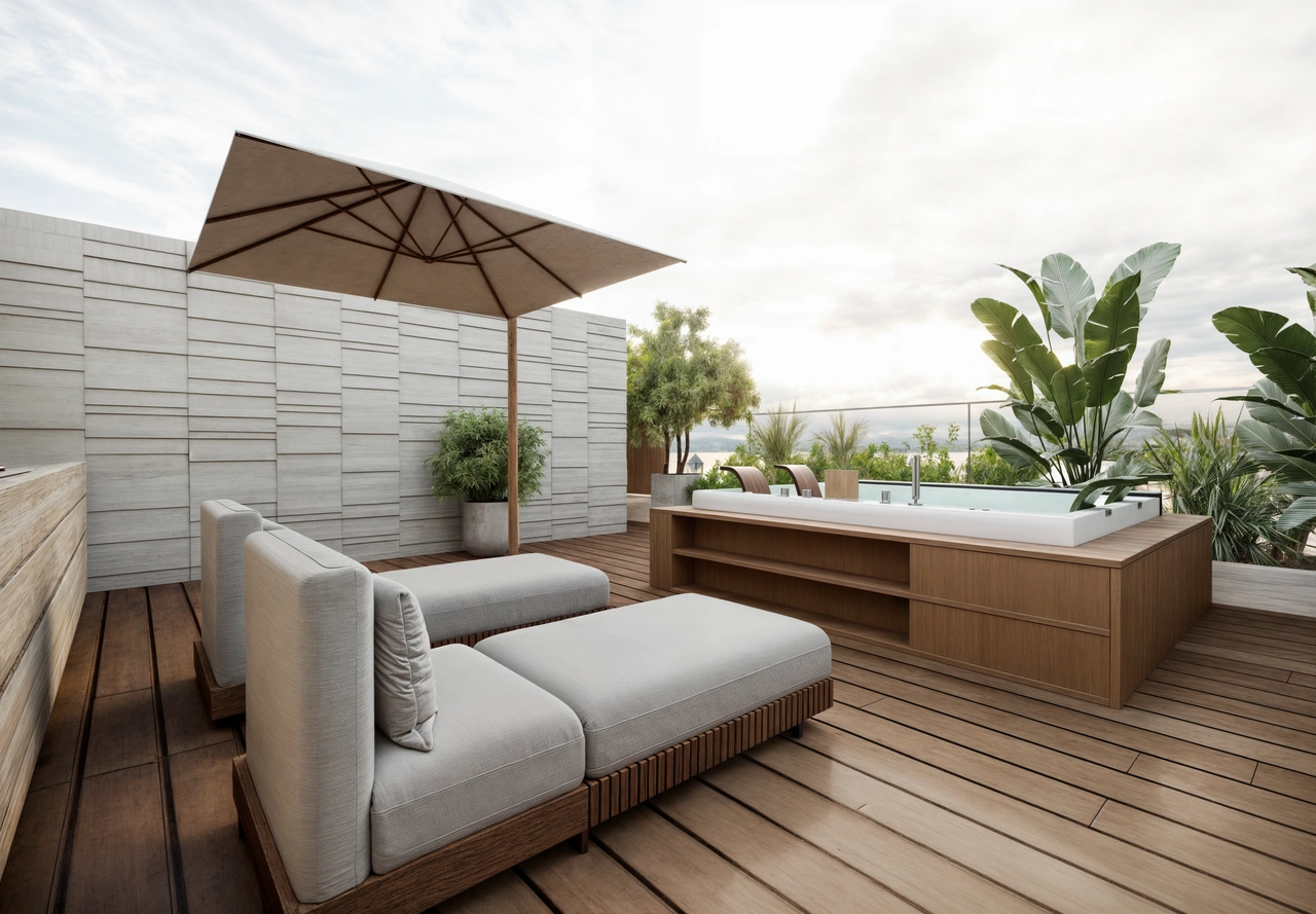 Apartment 402 is a premium fourth-floor two-bedroom, two-bathroom penthouse apartment offering 84 m² of internal living space, extending onto a 28 m² covered veranda and a substantial 113 m² private roof garden. The roof garden transforms the apartment into a true indoor–outdoor residence, ideal for entertaining, relaxation, and enjoying elevated views across the city, mountains, and sea.