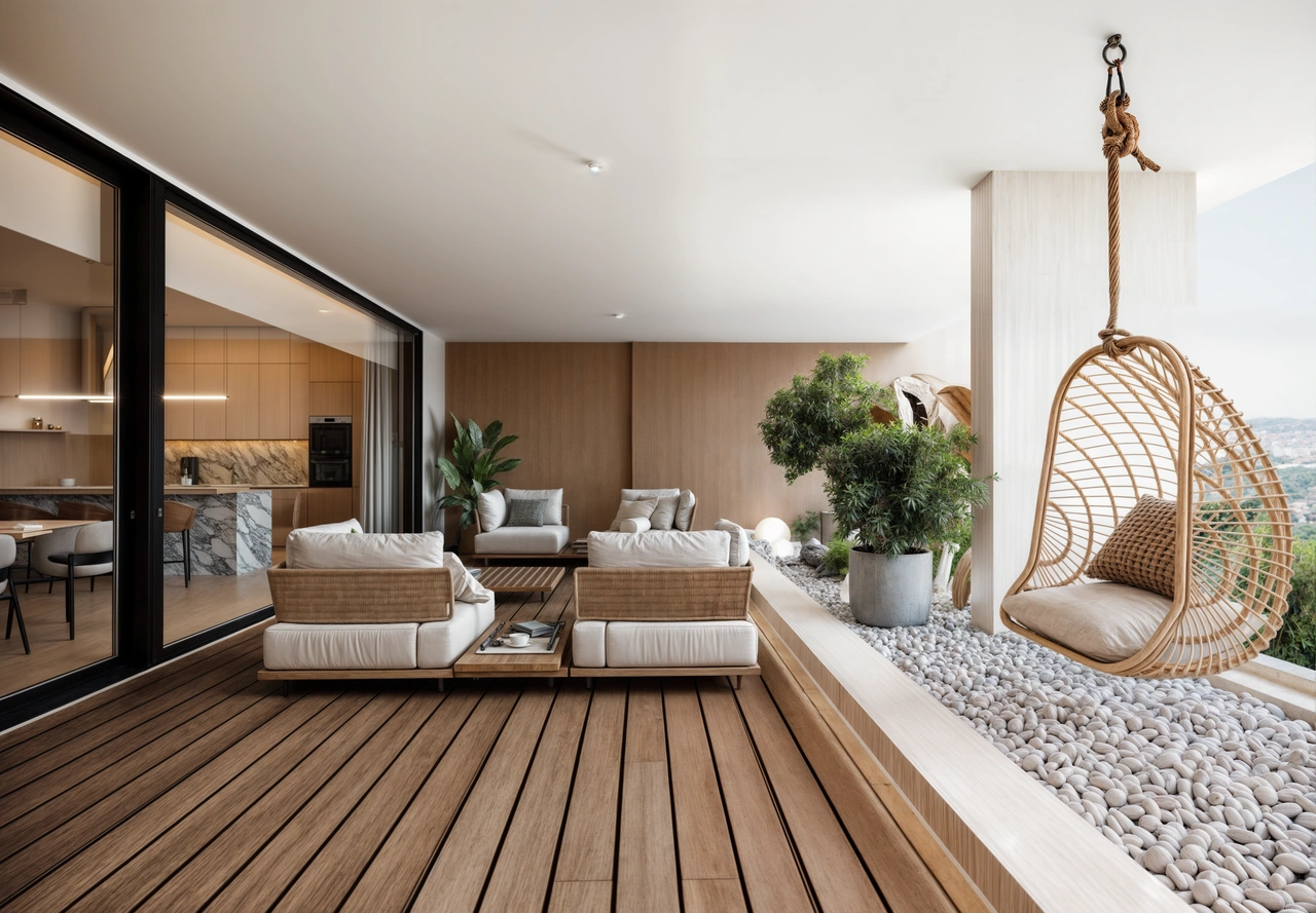Apartment 404 is a spacious fourth-floor two-bedroom, two-bathroom apartment offering 85 m² of internal living space and an impressive 32 m² covered veranda. The unusually large veranda creates a strong connection between indoor and outdoor living, making it particularly attractive to lifestyle-focused buyers.