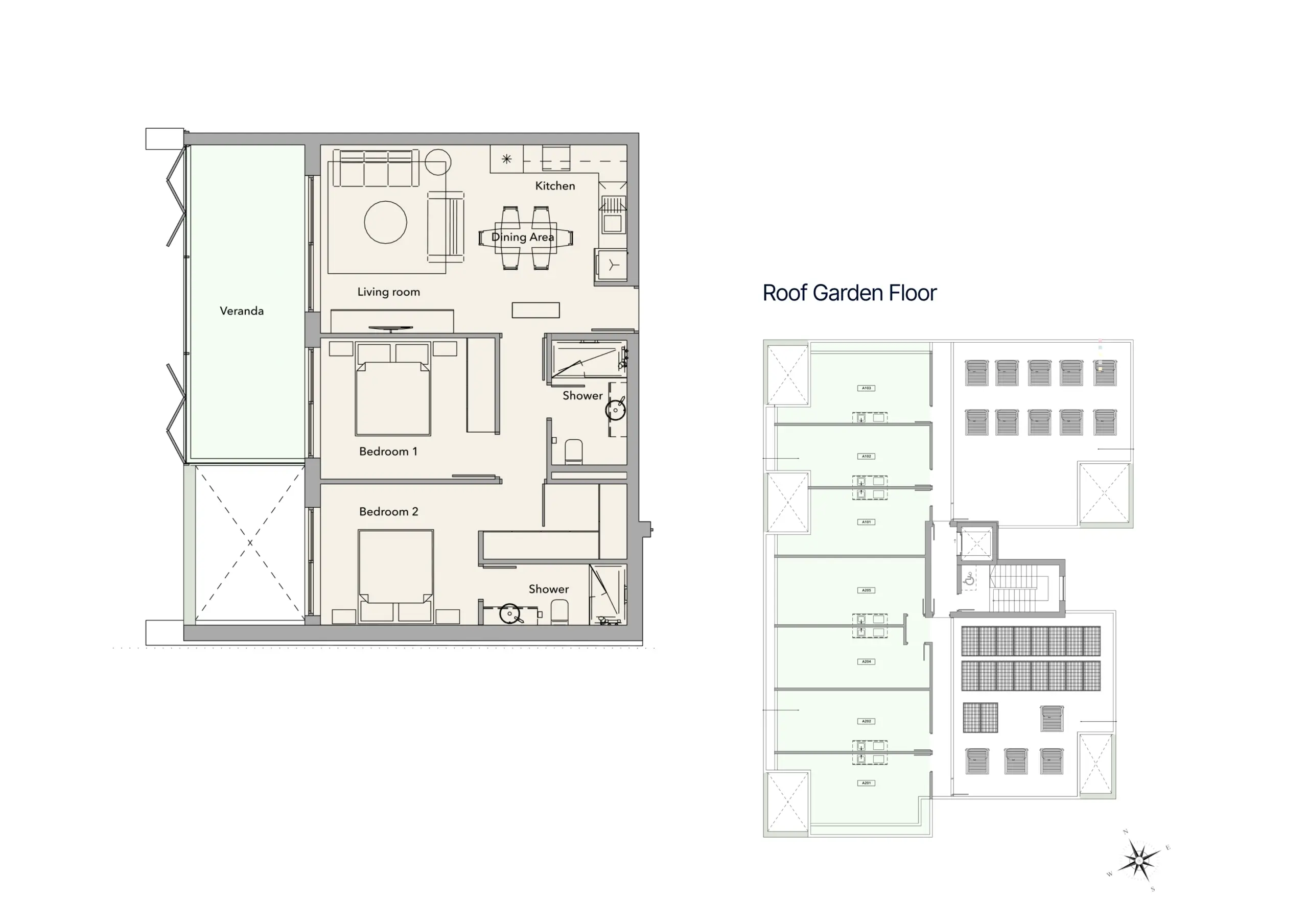 A201 — 2 Bedrooms, Garden View & Roof Garden