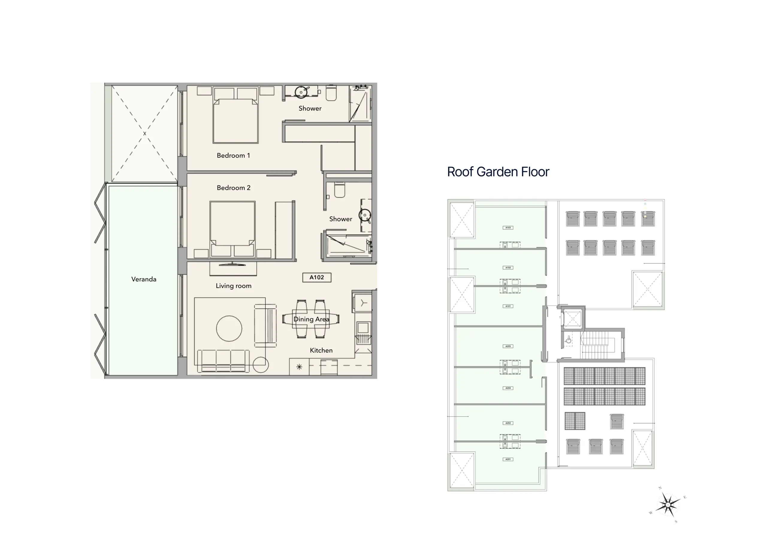 A202 — 2 Bedrooms, Garden View & Roof Garden
